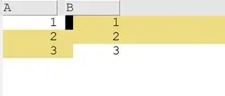 After placing the cursor in cell B2, typing (ses-mark-column), or the related key binding S-M-h, gives: