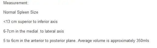 If the spleen is double average wide or thick, is that ok unless the height is? My question literally asks this. "Is only the spleen's height CONCERNING?" – Friendly Person 44 Feb 12 '16 at 02:36
