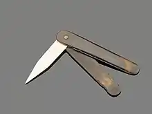 The first medical writings of ancient Greeks indicate they were commonly using tools identical to today's scalpels around 500 BC.[3] The amphismela was an anatomical knife edged on both sides. The term comes from the Greek αμφι (utrinque, "on both sides"), and μελιζω (incido, "I cut").[4]
