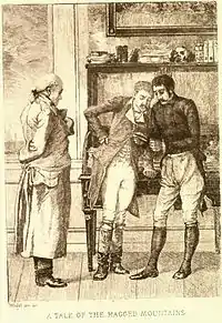 "A Tale of the Ragged Mountains" is a fantastical short story written by Edgar Allan Poe. Set near the University of Virginia at Charlottesville (where Poe had spent a year), it is the only one of his stories to take place in Virginia. It was first published in Godey's Lady's Book in April 1844[1] and was included in Poe's short story collection Tales, published in New York by Wiley and Putnam in 1845.