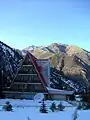 There is a nominal fee for entering the park. Past the gate, the road continues 12 km to a small collection of buildings, including one newly renovated lodge. At the end of the road, up a trail to the left (East), lies the Ak-Sai Glacier, where remains of a Soviet climbing base indicate the high quality mountaineering within the park. The Soviet climbing base (Ratsek Hut) has been recently improved and is acting as a base for rock climbers.[6] The region's most famous peaks rise from the Ak-Sai glacier, including Korona Peak (4860m) and Free Korea Peak (4740m). To the west of Ala Archa Valley is a trail to the Adygene valley where a climbers' cemetery is located. A third main trail continues down the center of the Ala-Archa valley for 10 km to an old, now abandoned, ski area and numerous other 4000m peaks.
