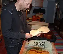 He also developed an interest in the construction of musical instruments and participated in a four-year course in violin making in Leksand. Graduation from this course qualified him as a member of S.V.I.T. (Swedish Violinmakers in the Italian Tradition). Anders has built 41 fiddles (including the viola d'amore played by Magnus Stinnerbom), and has sold all but one of them (a Hardanger fiddle that he still plays).