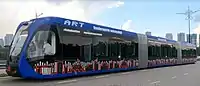 In January 2021, a LiDAR guided bi-articulated bus for IMBRT arrived in Johor from China.[13] The guided buses that will be used for this project is an Autonomous Rail Rapid Transit (ART) type that was imported by Mobilus Sdn Bhd, a 51:49 joint venture company established between Eccaz Sdn. Bhd. and CRRC Urban Traffic Co Ltd, a member of CRRC Group. Malaysia will be the first country in the region to potentially adopt this technology.[10]