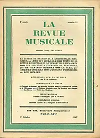 La Revue musicale was a music magazine founded by Henry Prunières in 1920.[1] La Revue musicale of Prunières was undoubtedly the first music publishing magazine giving as much attention to the quality of editing, iconography, and illustration. In each issue (11 per year), there was plenty of information on the musical and choreographic life in many countries.