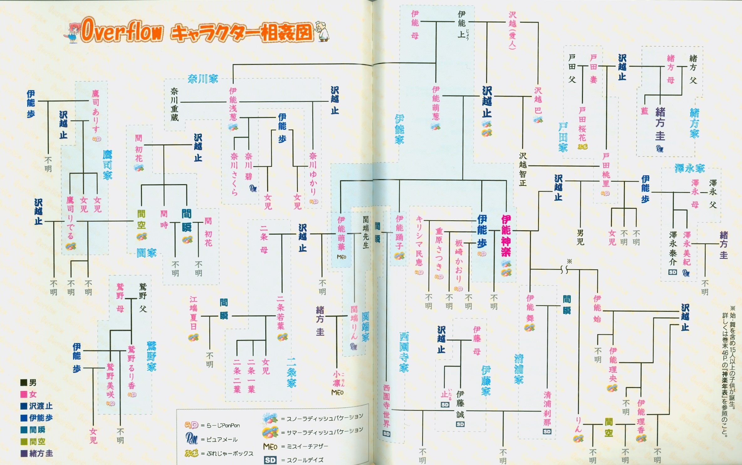 - Youko Saionji, maiden name Inō, is Sekai's mother. Benevolent, knowledgeable, wise and effervescent, Yōko serves to provide advice and guidance to her daughter when necessary, especially concerning her relationships. She is a restaurateur of Radish with friend, and slight rival, Mai Kiyoura. She is one of the heroines in Summer Days and Shiny Days. Her father is Tomaru Sawagoe (a character who appeared in other 0verlfow games), that makes her 'half-sister' of Makoto, so Makoto is Youko's younger brother.