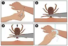 - ↑ CDC (2022-05-13). "Tick removal | CDC". Centers for Disease Control and Prevention. Retrieved 2023-10-04.
