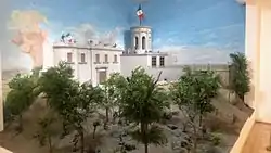The first part recreates scenes from Mexico with clay figures and scenographies made of wood and plastic. Each model has an audio and illumination system that plays narrations from the represented events. It includes the quotes from the main protagonists, as well as the music of that time. This improves the dramatics of the scenes. This museum portrays how common life in New Spain was during the late years of the viceroyalty, when the first conspiracies against the crown took place. The main events of the Independence War are explained as well as all the conspiracies from the criollo against the crown. It portrays the hard path that the country followed during the 19th century: interventionism, inside wars, territory loss. The contradictions of the Porfiriato are exposed such as the stability that provided the inequality in economy. The museum makes a special emphasis in Madero’s and all constitutionalists' roles in the Mexican Revolution.[3]