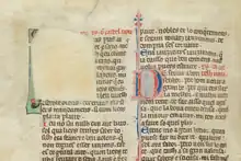 Raimon's treatise, the Doctrinal, contains 400 lines divided into 14 rhymed laisses.[1] It was transmitted independently of his lyric poetry and is found in two manuscripts: British Museum, Harley 7403 and Biblioteca Medicea Laurenziana, Ashburnham 40b.[2] In it, Raimon describes himself as a poor knight who gave up "worthless singing" under the influence of some good clergymen.[2] The Doctrinal is mostly about the sacraments, but also ethics.[1][2] It was intended for a popular audience and for public recitation.[2]