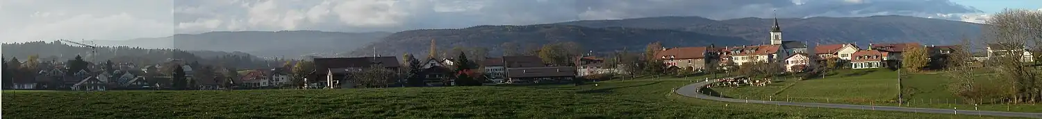 The municipality is located between the vineyards of La Côte and the Jura Mountains.