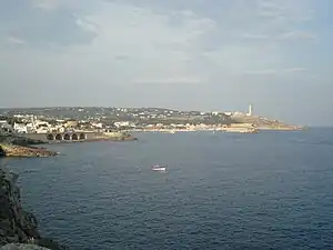 Santa Maria di Leuca, often spelled simply Leuca (Greek: Λευκά,[1] from Leukos, "white"), is a frazione of the comune of Castrignano del Capo, in the Salento peninsula (Apulia), southern Italy. A part of the town once belonged to the comune of Gagliano del Capo.