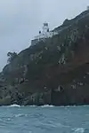 Sark Lighthouse is an active lighthouse located on the side of cliffs at Point Robert, at the north east of Sark, and guides vessels passing through the Channel Islands away from Blanchard Rock, which lies several miles to the east.[1] It was constructed by Trinity House in 1913 and comprises a white, octagonal tower rising from flat-roofed service rooms and cottages, all built of stone. Access is provided by steps down from the top of the cliff, but the lighthouse was automated in 1994 and is now remotely monitored from the Trinity House operations centre in Harwich, Essex.[2]