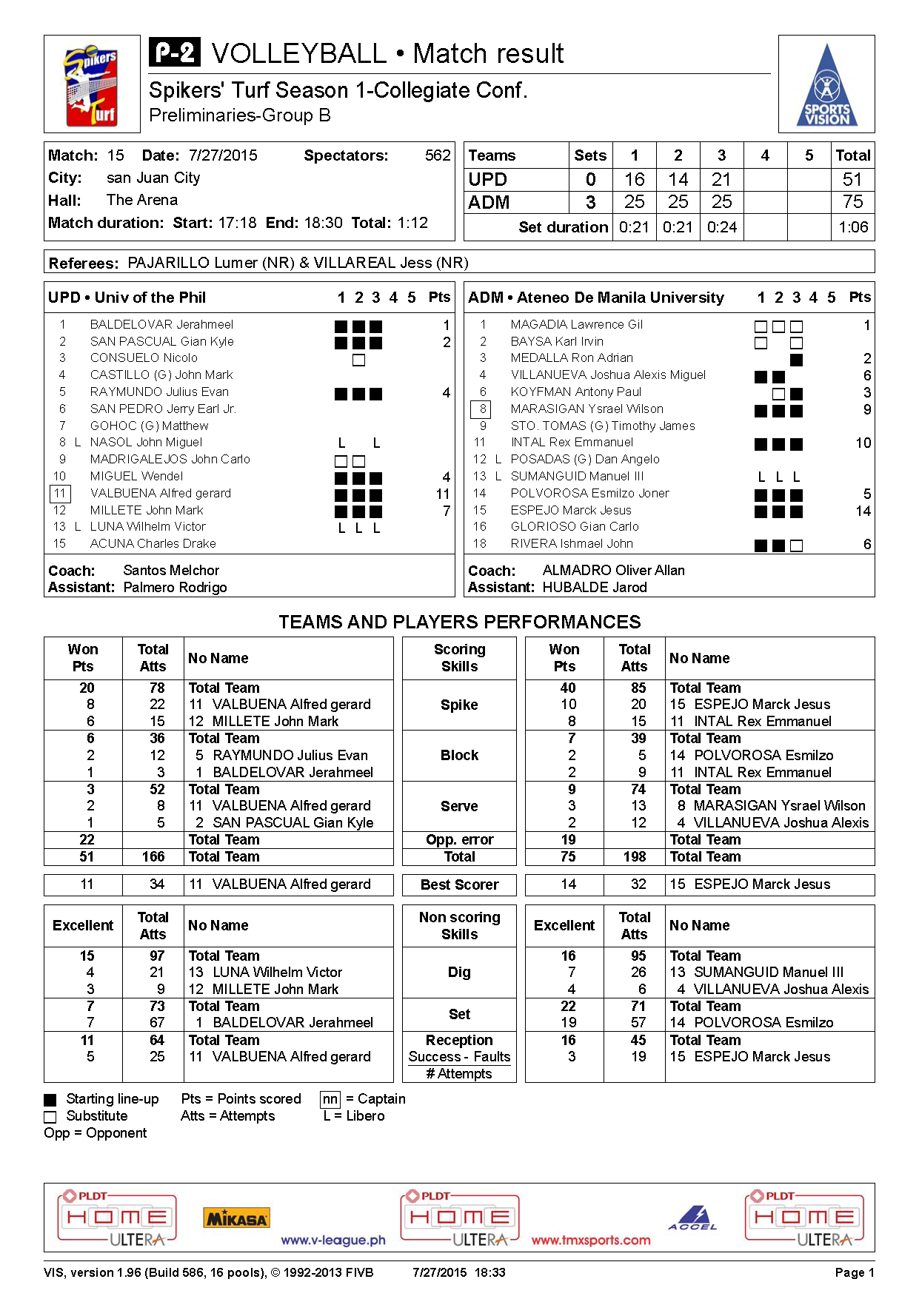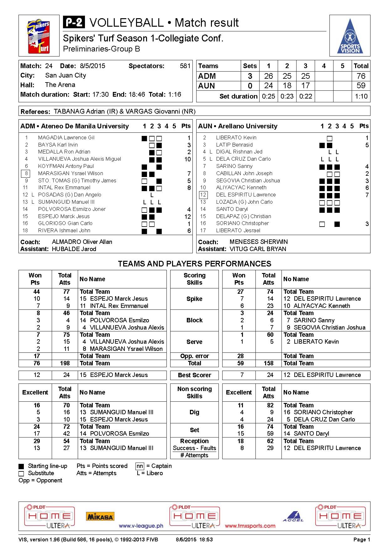- ↑ "Ateneo goes 13-0, sweeps NU for Spikers' Turf title - Bong Lozada INQUIRER.net 08:24PM September 27th, 2015".