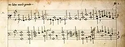Excerpt from a keyboard work by William Byrd written on a six-line staff, 1591