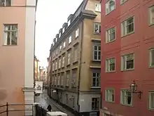 Glaucus 8 in the intersection Österlånggatan/Johannesgränd. To the left lies Baggensgatan 27.