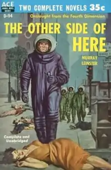The Other Side of Here is an science fiction novel by American writer Murray Leinster, first published as a five-part Astounding Stories serial in 1936, under the title "The Incredible Invasion". It was first published in book form, in a "thorough revision",[1] as one side of an Ace Double, in 1955. While no further American editions have been issued, the novel has been translated into Italian (L'altra dimensione, 1955), Spanish (Ataque desde la Cuarta Dimensión, 1956), French (L'autre côté du monde, 1958) and German (Invasion aus einer anderen Welt, 1959).[2] The novels tells the story of "an invasion from the fourth dimension", foiled by an insurrection against the invaders' home government.[3]
