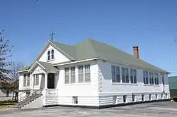 The Tontitown School Building is a historic former school building on US Highway 412 (US 412) in Tontitown, Arkansas. It is a single-story hip-roofed building, fashioned out of concrete blocks. It has corner blocks set in a quoin pattern, and gabled dormers front and rear which house paired round-arch windows. The front entry is sheltered by a gabled portico supported by Corinthian columns. The school was built in 1920 to accommodated the community's growing Italian immigrant population.[2] The building is now owned by the adjacent St. Joseph's Church.