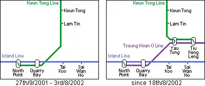 ![]() Realignment of Kwun Tong line upon the inauguration of Tseung Kwan O line |